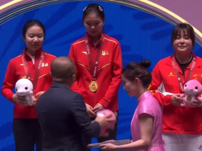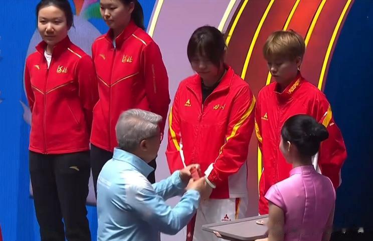 不过有人好奇,在女单决赛中给姚睿轩担任场外指导的是老教练杨广弟。球迷应该认识这位老教练。他是孙颖莎的启蒙恩师。为何他不登台领奖,改为一位女教练登台领奖呢?