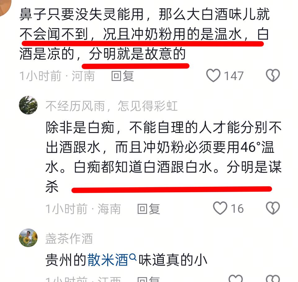 追问之下,奶奶才支支吾吾地说,下午用桶里的\"水\"给孩子冲了奶。妈妈冲到厨房一看,差点晕过去——那个桶里装的是三十多度的米酒!