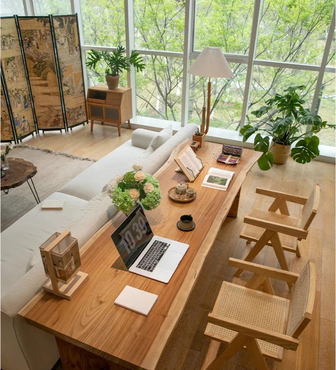 如果你经常在家办公,可以在横厅里隔出一个小工作区,放上书桌、书架。用屏风或柜子做隔断,既保持整洁,也能保证光线充足,这样就给自己创造了一个舒适、高效的工作环境。