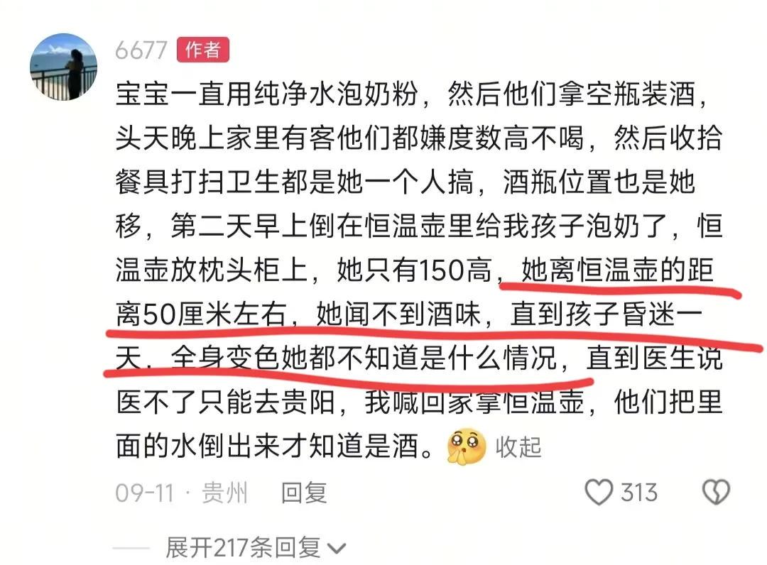孩子喝完直接犯呕,脸都变成紫色的了,她一点都没有慌张,愣是拖了几个小时才告诉儿媳妇。