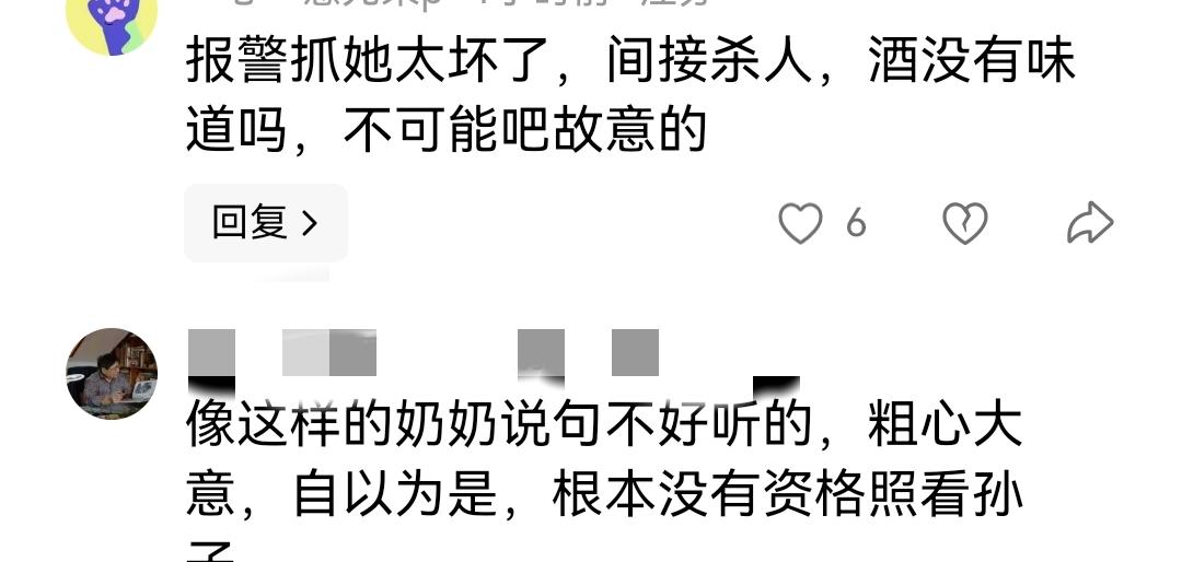 从照片上看,这奶奶的年纪也不大,白酒的味道那么冲,她的鼻子闻不出来吗?还是心思根本不在孩子身上。