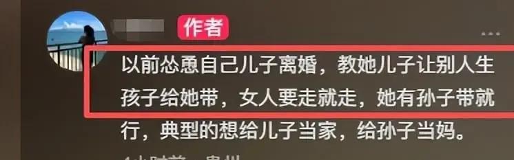 这妈妈还透露,这奶奶还三观不正,经常怂恿自己儿子和儿媳离婚,教儿子在外面拈花惹草,还说生了孩子给她带,女人想走就走。